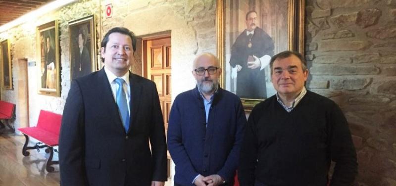 O vicerreitor Suazo, entre Roberto López e Ramón Leis. Foto: Universiadde Autónoma de Chile