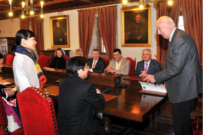 O reitor Juan Casares recibiu este venres 30 unha comisión da Hanoi University que se achegou ata Santiago para formalizar o acordo entre as dúas institucións académicas que permitirá o intercambio de alumnado e PDI, e a realización doutras iniciativas de formación conxuntas. No acto protocolario de sinatura estiveron presentes representantes da universidade asiática, o vicerreitor de Titulacións e Persoal Docente e Investigador, Jesús López Romalde, e o reitor electo Juan Viaño. O acordo entre as dúas universidades recolle a posibilidade de desenvolver programas específicos para o intercambio de profesores, investigadores e estudantes; para a formación de docentes e investigadores; o intercambio de información; a realización de cursos de grado e posgrado; a organización de seminarios, conferencias, coloquios, encontros, xornadas; e para levar a cabo conxuntamente publicacións ou proxectos científicos. O primeiro destes programas de intercambio quedou recollido nun convenio específico que permitirá que un máximo de catro alumnos/alumnas por ano académico realicen estadías por un tempo dun ano completo ou ben por un semestre. En canto ao intercambio de persoal docente e investigador, o acordo específico sinala que serán un máximo de catro os PDI que poderán participar no programa cada ano, sendo propostos polo seu departamento. Na universidade de destino cumprirán obrigas e terán responsabilidades similares ás que posúen na súa universidade e permanecerán por períodos de tempo comprendidos entre unha semana e seis meses como máximo. Todos os convenios asinados teñen unha vixencia de dous anos, prorrogables automaticamente polo mesmo período de tempo. HANU A Hanoi University (HANU) é unha universidade pública fundada en 1959 cun especial interese na internacionalización e diversificación para o que asina este convenio que ten como fin principal promover e fomentar a cultura científica mediante unha colaboración nos campos da ensinanza e a investigación. De esquerda a dereita: Juan Viaño, Juan Casares e Nguyen Dinh Luan (Foto: Santi Alvite)