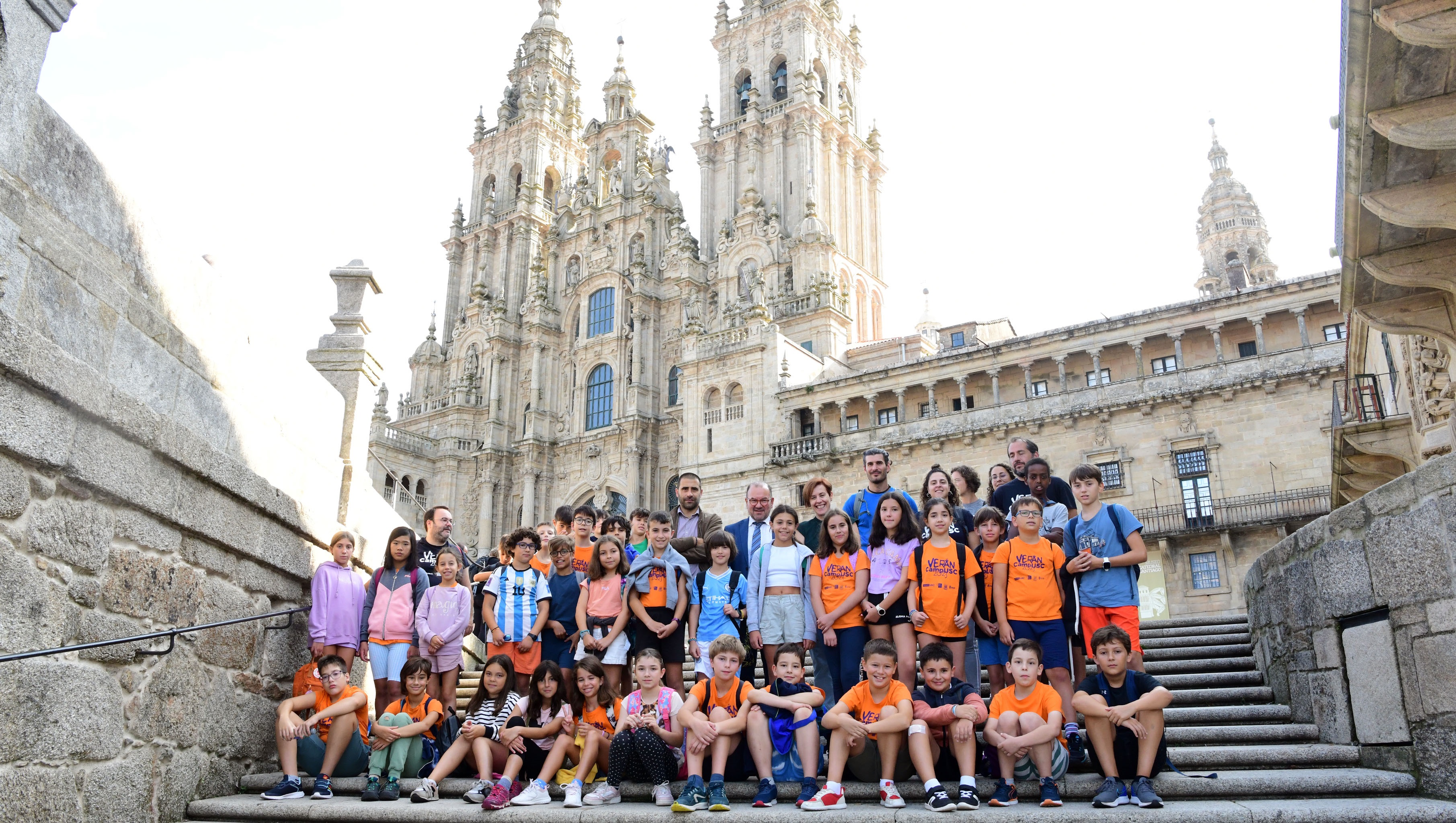 O Verán CampUSC baixa o pano esta semana convertido nunha acción “máis que consolidada” á hora de promover a conciliación da vida laboral e familiar das familias con nenos e nenas nacidos/as entre os anos 2010 e 2019. Así o explicou o xerente da Fundación USC, Óscar Hermida, no transcurso do encontro mantido este mércores 6, no Colexio San Xerome, co reitor Antonio López e coa vicerreitora de Estudantes e Cultura, Pilar Murias, no que tamén participaron preto de corenta cativos e cativas integrantes da derradeira das cinco quendas que integran esta iniciativa. En total, a edición 2023 deste campus superou o medio milleiro de inscricións e contou con preto de 200 nenos e nenas participantes xa que moitos deles realizan máis dunha inscrición para poder participar en diversas quendas.