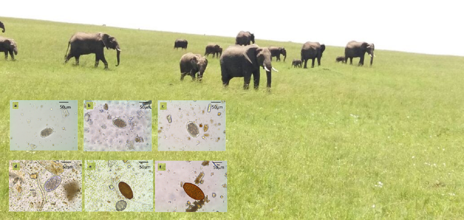 Parasitos estudadados na investigación, sobre unha imaxe de elefantes africanos