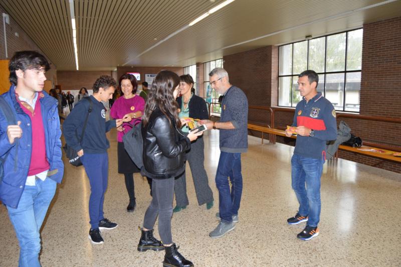 Reparto de material promocional a prol do uso do galego entre o alumnado de Veterinaria