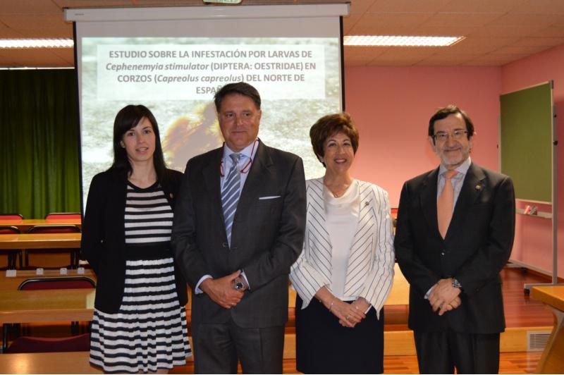 A validación desta técnica metodolóxica, baseado en antíxenos de excreción-secreción obtidos a partir de larvas de segundo estadio de C. stimulator, centra as pescudas desenvolvidas polo ex presidente e presidente de honra da Asociación Española do Corzo (ACE) e funcionario do Corpo Superior de Veterinarios do Principado de Asturias, Gerardo Pajares Bernaldo de Quirós, na tese de doutoramento 'Estudo sobre a infestación por larvas de Cephenemyia stimulator (Diptera: Oestridae) en corzos (Capreolus capreolus) do Norte de España', que vén de presentar na Facultade de Veterinaria da USC. Esta investigación, dirixida por Mª Patrocinio Morrondo Pelayo e Pablo Díez Baños, catedráticos da área de Sanidade Animal do Departamento de Patoloxía Animal da USC, e María Sol Arias Vázquez, bolseira de postdoutoramento da Xunta de Galicia, constitúe xa a quinta tese de doutoramento sobre a cuestión sanitaria do corzo dirixida polo grupo de Investigación en Sanidade Animal de Galicia (Invesaga) da USC. A cefenemiose é unha miase obrigatoria e específica do corzo que está amplamente difundida na área de distribución do ungulado, concretamente no norte, centro e sur de Europa, aínda que en Espas non se rexistraron as primeiras denuncias de infestacións ata comezos do século XXI. As moscas de Cephenemyia ao achegarse aos corzos para depositar as larvas cáusanlles tensións e inquietude, o que interfire negativamente sobre a inxestión e aproveitamento de alimentos por parte do ungulado. A presenza dos diferentes estadios larvarios de C. stimulator nas vías respiratorias altas orixina sinusite, estornudos, descarga nasal, tos, disnea, problemas de deglutición e mesmo pneumonía por aspiración. Ademais, se a intensidade da infestación é elevada (30-80 larvas) pode producir a morte de aproximadamente o 50% dos corzos, como sucedeu no Norte de España desde 2005. Daquela, as achegas recollidas por Gerardo Pajares na súa tese son relevantes porque método de inmunodiagnóstico (ELISA-indirecto) demostra especificidade e sensibilidade axeitadas para estudar a seroprevalencia da míase en corzos, xa que constata unha boa correlación entre niveis de IgG séricos e poboacións larvarias nos animais examinados. De feito, esta técnica permitiu comprobar, tras a análise de máis de 500 soros, que entre os anos 1994 e 2000 non había corzos seropositivos a C. stimulator no noroeste de España. Unha casuística diferente é a advertida entre os anos 2007 ao 2014, período no que se detectaron seroprevalencias do 40%, unhas estatísticas corroboradas cos estudos realizados tralas necropsias de máis de 100 corzos, o que fai pensar que esta miasis introduciuse en España a partir de comezos do século XXI. A tese comproba ademais que os factores climáticos das zonas de procedencia dos corzos inflúen en que prevaleza ou non a intensidade de infestación, sendo estes máis elevados nas zonas de montaña, diferenzas que son máis acentuadas respecto da intensidade de infestación. Así mesmo, o sexo e a idade dos cérvidos determinan diferenzas apreciables de permanencia e intensidade de infestación por larvas de C. stimulator. Así, os adultos e os machos presentan porcentaxes de infestación máis altos, mentres que os exemplares mozos e as femias acubillan maior número de larvas. A combinación das técnicas de exame directo (necropsia) e indirecto (inmunodiagnóstico) permitiu establecer que o ciclo biolóxico de C. stimulator está condicionado por factores climatolóxicos, de modo que se comprobou que a diapausa larvaria ten lugar no outono e no inverno, o que coincide cunha evidente redución da seroprevalencia e unha moi escasa ou nula presenza de larvas 1 e 2. Mentres, dado que o vo da mosca comeza ao final da primavera e esténdese até o verán, é neste período cando se activa especialmente o desenvolvemento do ciclo interno. A tese demostra que Cephenemyia adapta o seu ritmo de desenvolvemento ás condicións climáticas, de forma que, nas épocas máis desfavorables, as larvas de primeiro e segundo estadio mantéñense en diapausa favorecendo a continuidade do ciclo. Tribunal da tese e cualificación Os profesores da área de Sanidade Animal Natividad Díez Baños, da Universidade de León; Rosario Panadero E Adolfo Paz, da USC; Carlos Nores, profesor de Zooloxía da Universidade de Oviedo, e o tamén doutor e investigador responsable da área de Xenética e Reprodución Animal do Servizo Rexional de Investigación e Desenvolvemento: SERIDA, Félix Goyache, formaron o tribunal encargado de avaliar a tese presentada por Gerardo Pajares e que obtivo a cualificación de sobresaínte cum laude por unanimidade.