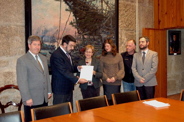 Benita Silva entregoulle o certificado ao decano de Medicina, Juan Gestal Otero