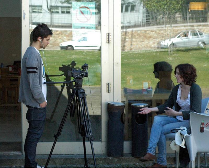 Alumnos de Ciencias da Comunicación colaboran na realización dos videomatóns. Foto Alfonso
