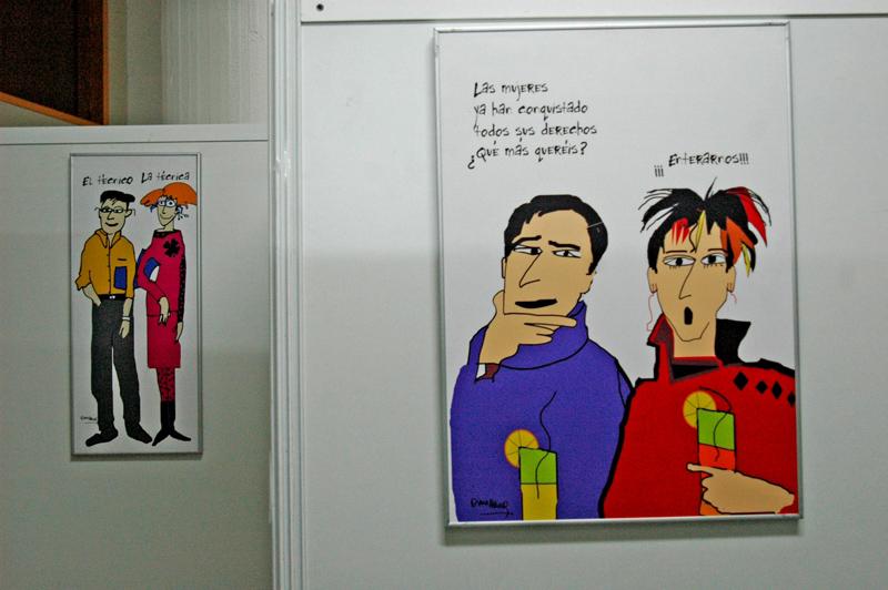 Logo de Filoloxía e Medicina, a exposición ‘¡Non ten nome!’ coas viñetas cómicas da artista Diana Raznovich rematará o seu periplo por Compostela cunha estadía dunha semana, entre os días 13 e 17 de febreiro, na Facultade de Farmacia. O seguinte destino será Lugo onde se poderá visitar na Facultade de Veterinaria a finais de mes, entre os días 20 e 27. ‘¡Non ten nome!’ é unha iniciativa enmarcada na campaña Linguaxe para a Igualdade na Comunicación (LIC) do Centro de Estudos da Muller da Universidade de Alacante. Con motivo da celebración do 8 de marzo, Día Internacional da Muller, a Universidade de Alacante presentou hai tres anos esta Campaña, deseñada por Diana Raznovich e con textos de Elena Simón Rodríguez, lingüista e experta en igualdade de xénero. A campaña pon de manifesto a importancia da linguaxe como ferramenta para a comunicación e a transmisión da cultura, fundamental para alcanzar unha situación de igualdade real e efectiva entre mulleres e homes, máis acorde coa nova realidade social e legal.
