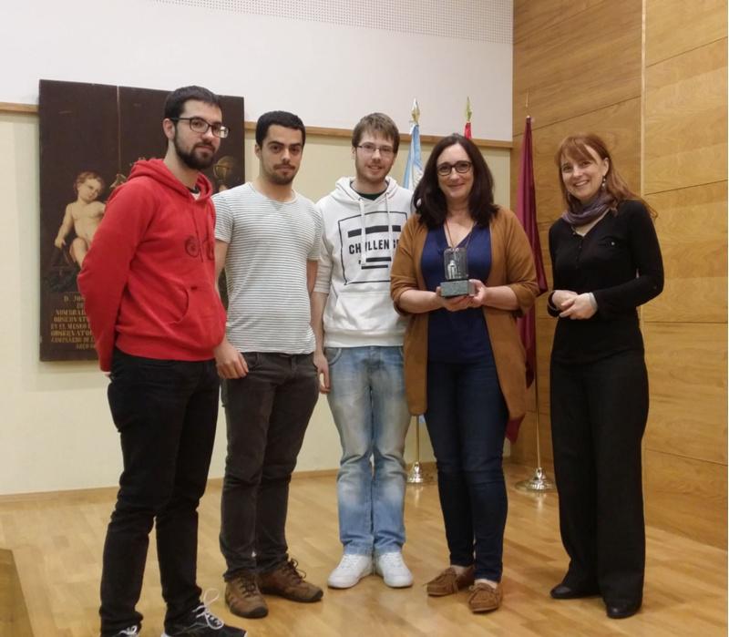A decana Mª Victoria Otero Espinar, co trofeo acompañada de integrantes do equipo e de Marta Carballo