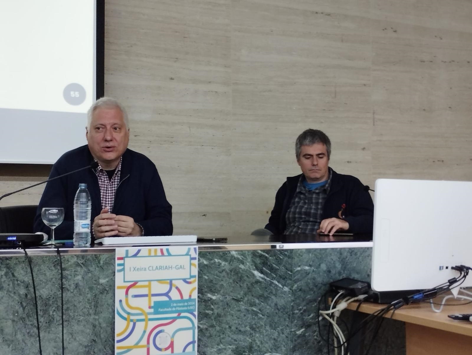 O Instituto da Lingua Galega (ILG) da USC presentou este xoves na facultade de Filoloxía o nodo galego da rede CLARIAH-ES, conformado polo propio ILG e polo Centro Singular de Investigación en Tecnoloxías Intelixentes (CiTIUS) da USC. CLARIAH-ES é unha infraestrutura dixital de investigación distribuída que forma parte dos consorcios europeos de investigación CLARIN -para o tratamento da linguaxe no eido da informática- e DARIAH -centrada no ensino e na investigación no ámbito das humanidades dixitais-.