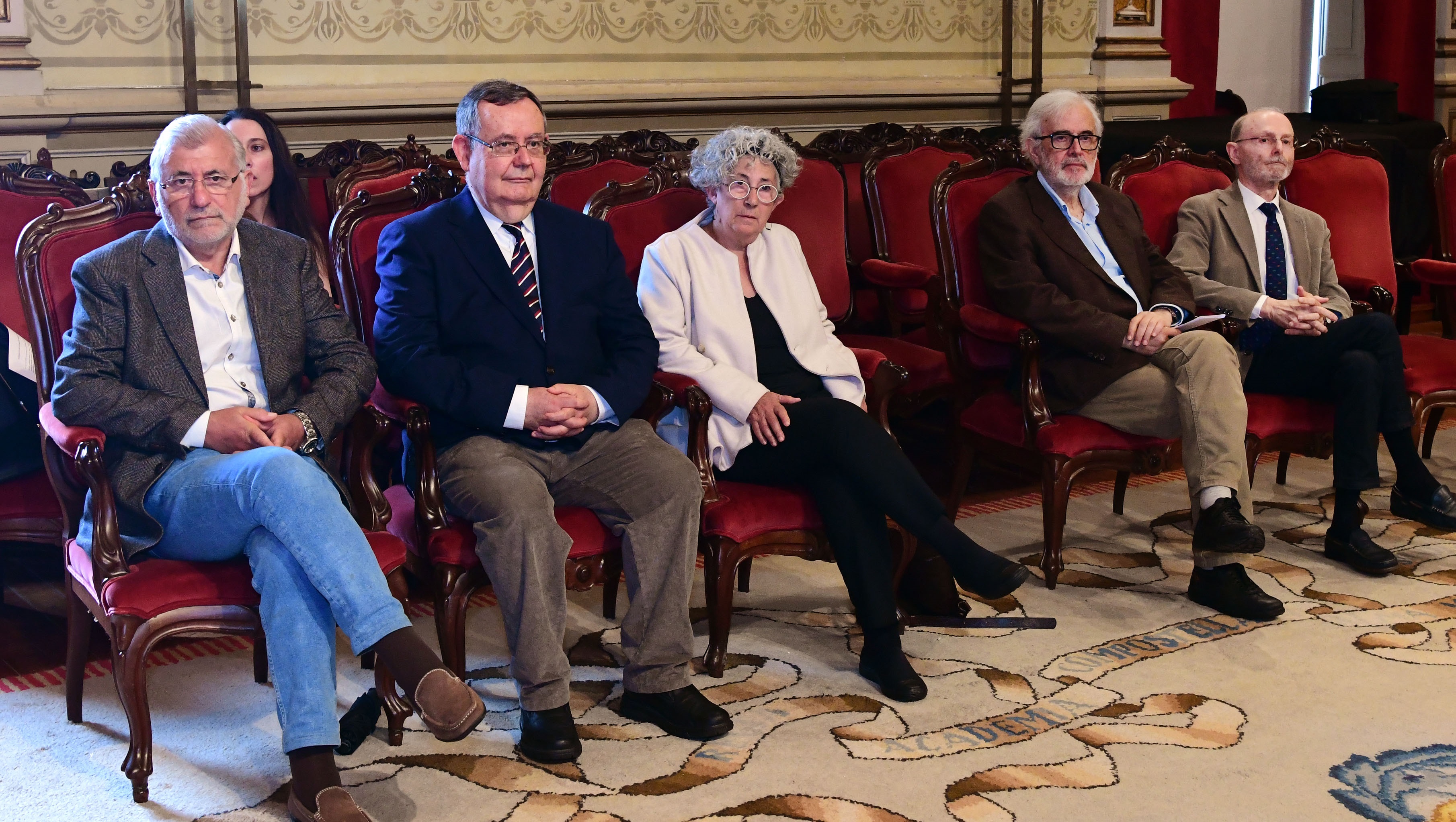 A Facultade de Xeografía e Historia da USC rendeu tributo este mércores 8 ao persoal que rematou os seus servizos no centro nos anos 2020, 2021 e 2022. A sesión de imposición das insignias que se desenvolveu no Paraninfo, estivo presidida polo reitor Antonio López. Tamén interviñeron no acto o decano do centro, Marco Virgilio García Quintela; e os directores dos departamentos de Xeografía, Historia da Arte e Historia, Rubén C. Lois González, Federico López Silvestre e Daniel Lanero Táboas.