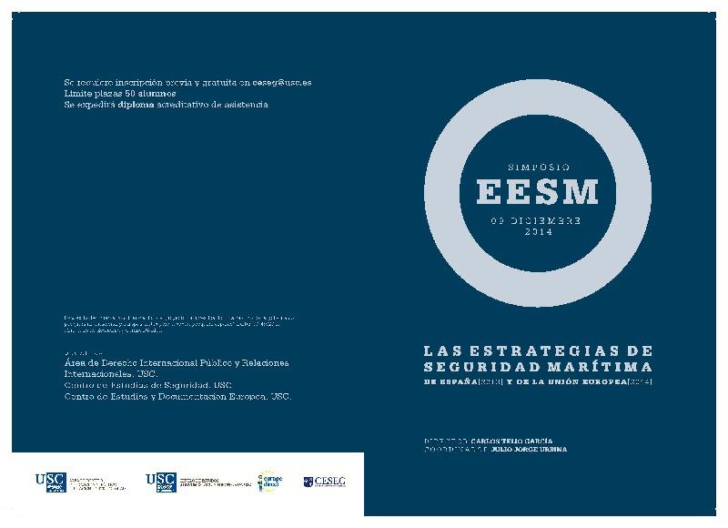 Tanto España no ano 2013 como a UE este mesmo ano acaban de aprobar recentemente as súas respectivas estratexias de seguridade marítima co obxectivo de mellorar a cooperación entre autoridades civís e militares e implicar operativamente a todos os actores relevantes neste ámbito: forzas e corpos de seguridade, autoridades de control fronteirizo, aduanas, de inspección de pesca, autoridades ambientais, responsables da administración marítima e á propia industria. A área de Dereito Internacional Público e Relacións Internacionais, o Centro de Estudos de Seguridade (CESEG) e o Centro de Estudos e Documentación Europeos (CEDE) organizan una xornada de achegamento ás estratexias de seguridade marítima de España e da Unión Europea no que diversos expertos realizarán unha aproximación ás cuestións máis relevantes que suscitan estas novas estratexias. Celebrarase a partir das 16.30 horas na Facultade de Dereito baixo a dirección de Carlos Teijo García e coordinado por Julio Jorge Urbina.