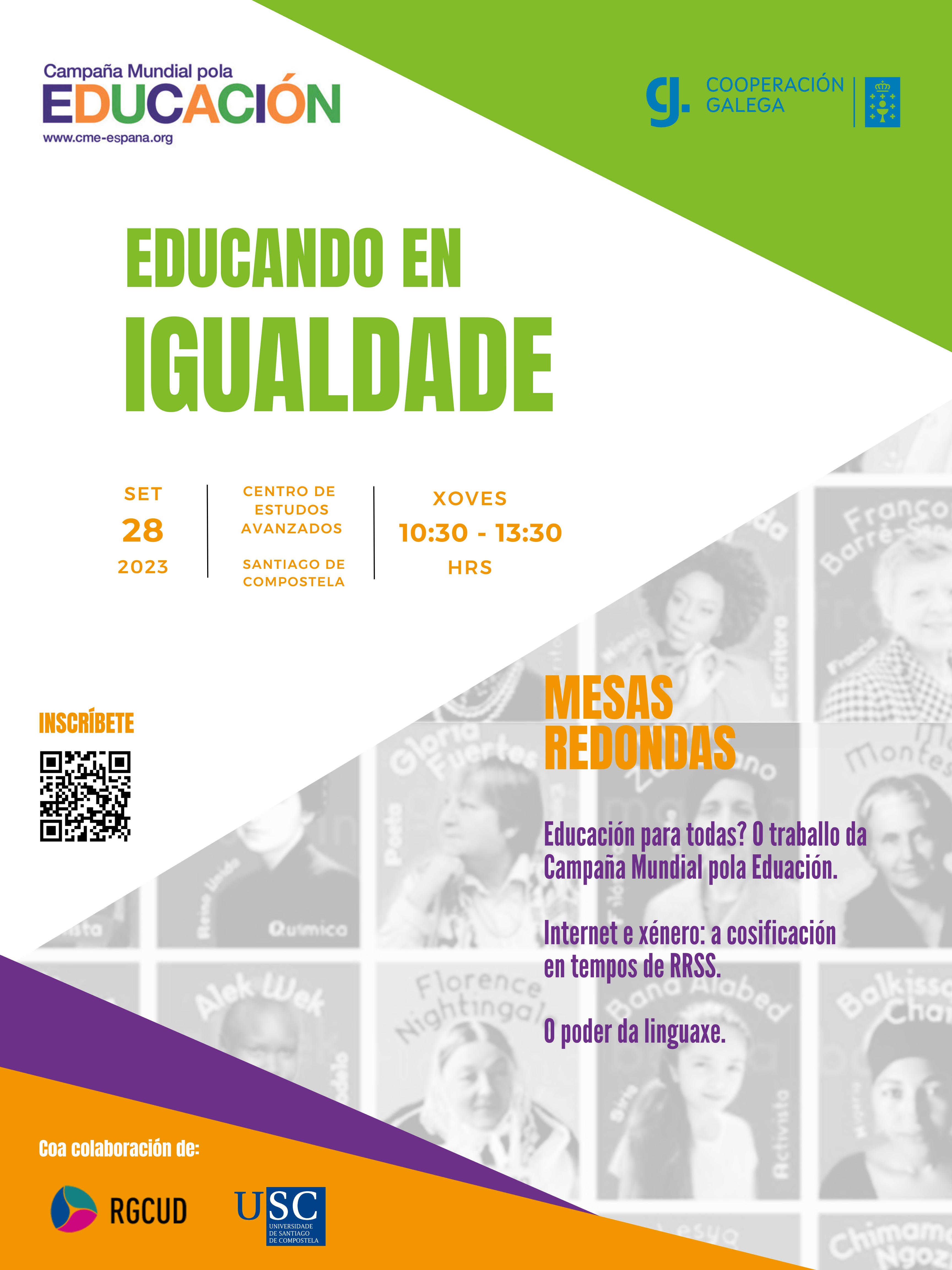 En 2023, Galicia cumpre 20 anos de adhesión á Campaña Mundial pola Educación. Na actualidade son cinco as entidades que participan dunha maneira coordinada a nivel global para apoiar as accións de incidencia no contexto autonómico. Educo (coordinador en 2023), Ayuda en Acción, o Grupo de Investigación Terceira Xeración (TeXe) da Universidade de Santiago de Compostela, Entreculturas e Taller de Solidariedade participan de maneira activa en defensa do dereito á Educación universal. A xornada conta coa financiación de Cooperación Galega e o apoio da Rede Galega de Cooperación Universitaria ao Desenvolvemento (RGCUD), da que forman parte as tres universidades públicas galegas.