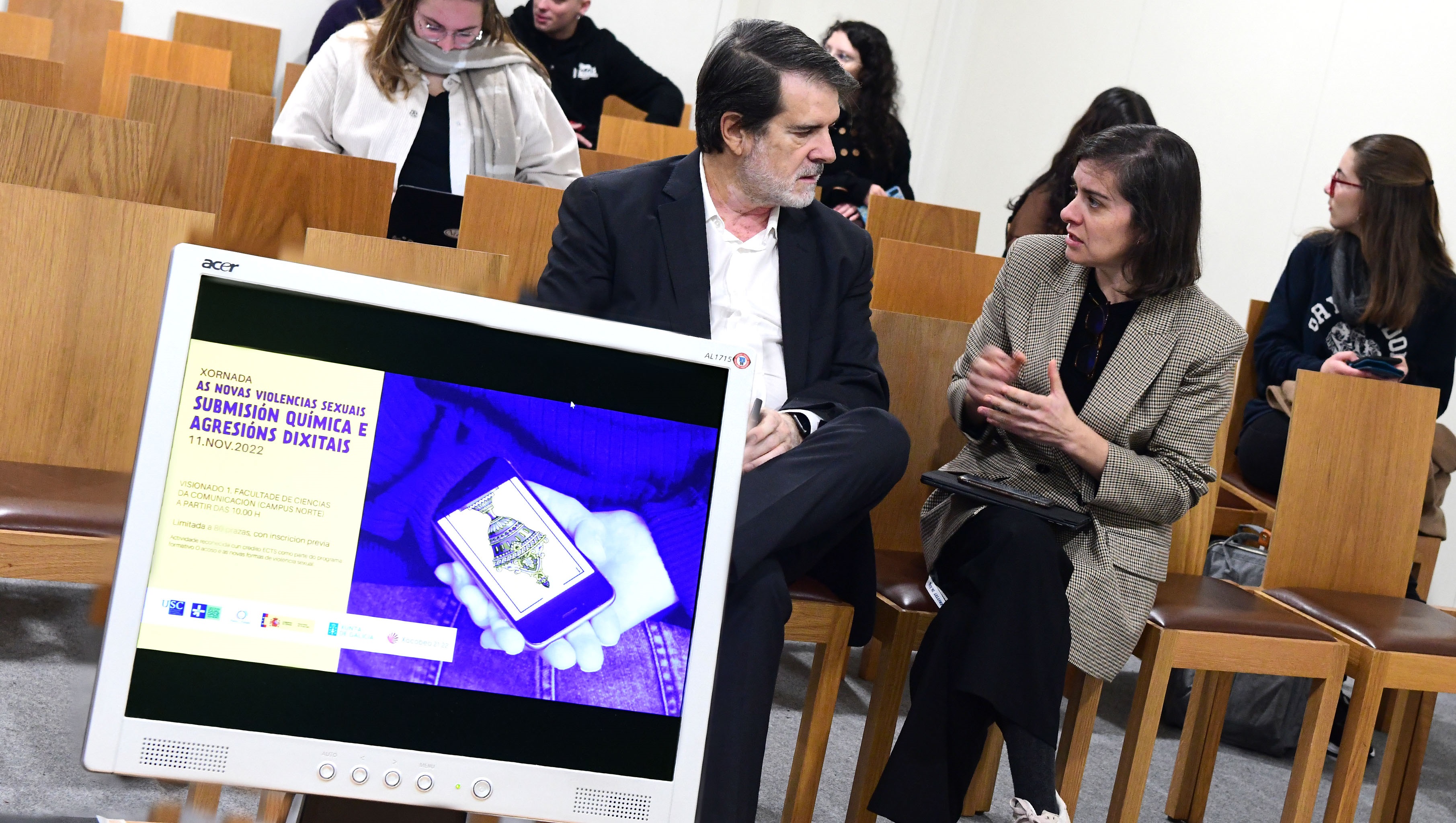 Francisco José Aramburu Vilariño, director de Urxencias do CHOU, presentou a guía de actuación ante un caso de submisión química. A continuación, Inés Sánchez Sellero, profesora da Facultade de Medicina da USC, abordou este tipo de submisión dende unha perspectiva toxicolóxica. A quenda de mañá pechouna Cláudia Morán Mato, integrante da asociación Xornalistas Galegas, quen reflexionou sobre o tratamento mediático que se lle está a dar ás picadas que sofren cada vez máis mulleres.