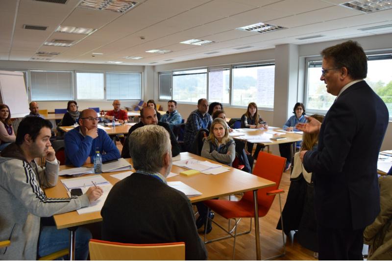 Javier Bueno, con participantes na xornada sobre asesoramento rural no edificio Cactus