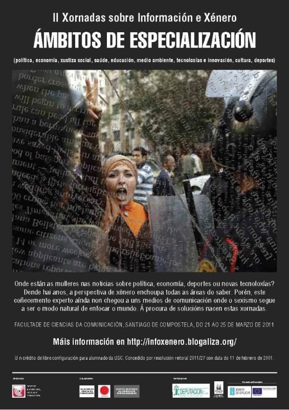 As II Xornadas sobre Información e Xénero, que terán lugar na Facultade de Ciencias da Comunicación do 21 ao 25 de marzo de 2011, analizarán a necesidade dun xornalismo especializado e elaborado dende a perspectiva de xénero, como mellor ferramenta para visibilizar o papel das mulleres na sociedade e loitar contra o sexismo e o androcentismo actuais dos medios de comunicación. No programa, que organiza o grupo CIDACOM, daranse cita especialistas en Comunicación e Xénero con docentes procedentes das máis diversas áreas disciplinarias, dende a política, a economía ou a xustiza social, ata a saúde, o medio ambiente, as novas tecnoloxías ou o deporte. Trátase dunha iniciativa formativa dirixida tanto ao alumnado como aos profesionais ligados coas Ciencias da Comunicación, así como para todas as persoas que desexen unha achega interdisciplinaria á perspectiva do xénero. A inscrición e matrícula xa se pode formalizar ata o próximo 10 de marzo. Ademais, o alumnado da USC poderá validar a súa asistencia ás xornadas por un crédito de libre configuración Obxectivos Concienciar, formar e especializar na aplicación transversal da perspectiva de xénero nos medios son os principais obxectivos destas xornadas. Nelas reflexionarase sobre a necesidade de incardinar a perspectiva de xénero de maneira transversal nos contidos dos medios de comunicación, nas súas máis diversas seccións e áreas. Achegaranse así mesmo instrumentos para a reflexión crítica sobre o traballo actual dos medios e estratexias para incardinar a perspectiva de xénero nos seus contidos. Como apuntan os responsables das xornadas, dende hai anos as teorías feministas e a perspectiva de xénero enchoupan todas as áreas do saber. Nesta dimensión, engaden “falta conectar cos medios este coñecemento especializado e fondamente comprometido coa loita pola igualdade”, xa que tal e como sinalan os investigadores “non é o mesmo informar en xeral sobre os datos do paro ou as taxas de ocupación que facelo tendo en conta a realidade diferenciada de mulleres e homes”. Para os promotores da iniciativa, a perspectiva de xénero “permite superar o gap entre o papel que na actualidade están a desempeñar as mulleres na sociedade e a presenza, aínda escasa e estereotipada que teñen nos medios de comunicación”. A aplicación da perspectiva de xénero na información, tal e como amosa o último informe internacional ‘Who makes the news?’ elaborado pola asociación WACC con datos correspondentes a 2009 a escala mundial, aínda é escasa, xa que só no 12 por cento das informacións teñen en conta esta estratexia, sinalan os investigadores.