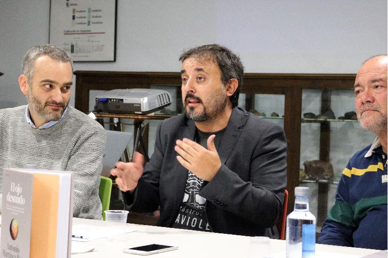 El ojo desnudo presentouse este mércores no Museo de Historia Natural da USC nun acto no que ademais do autor interviñeron Manuel Vicente, de ‘Efervescencia’, e Juan Ignacio Pérez Iglesias, coordinador da cátedra de Cultura Científica da UPV/EHU e autor do prólogo do libro. Na organización deste evento literario participan Divulgacción e Regueifas de Ciencia'16, que celebra a súa cuarta sesión este xoves 11 con Martínez Ron e Pérez Iglesias como relatores.