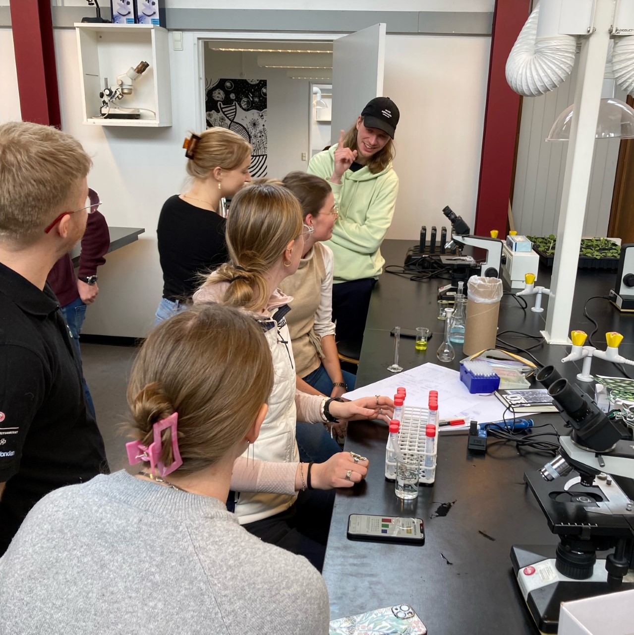 Estudantes de Química da Universidade de Copenhague dirixen unha sesión co kit Fotometrix con alumnado preuniversitario