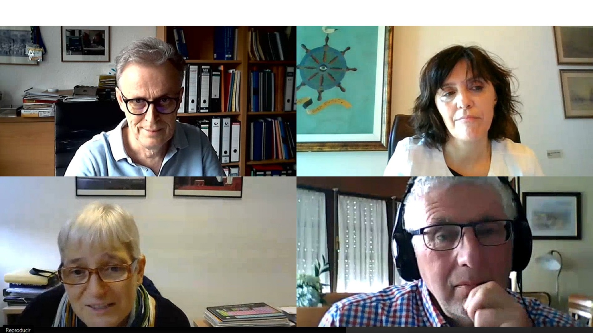 De esquerda a dereita e de arriba a abaixo, Wajih Al-Soufi, Montserrat Valcárcel, Mercedes Novo e Antonio Gregrorio, na apertura do campus en rede de XuvenCiencia