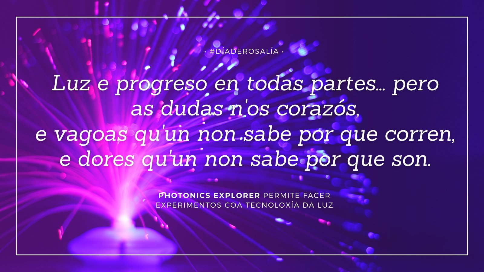 Asemade, esta campaña polo Día de Rosalía pretende ser o particular tributo do grupo de innovación docente XuvenCiencia a unha autora que soubo mirar arredor de si e ollar e facer unha disección precisa do territorio e do pobo de Galicia coa mesma curiosidade que esperta a ciencia nas persoas.