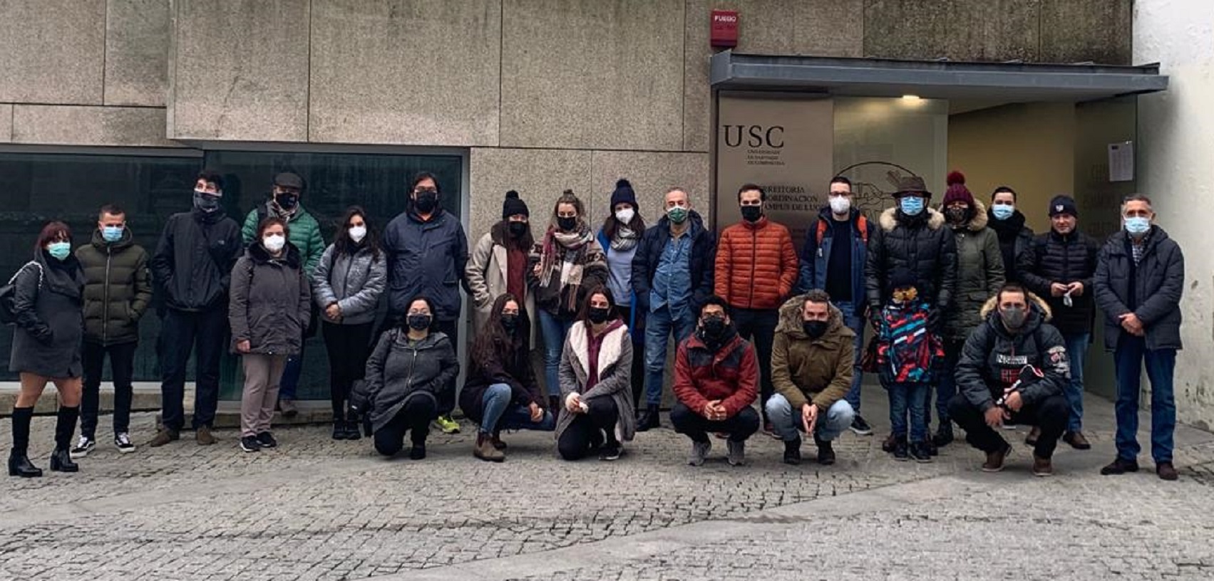 Participantes e organizadores do XXVII Maratón Fotográfico do Campus, diante da Casa do Saber