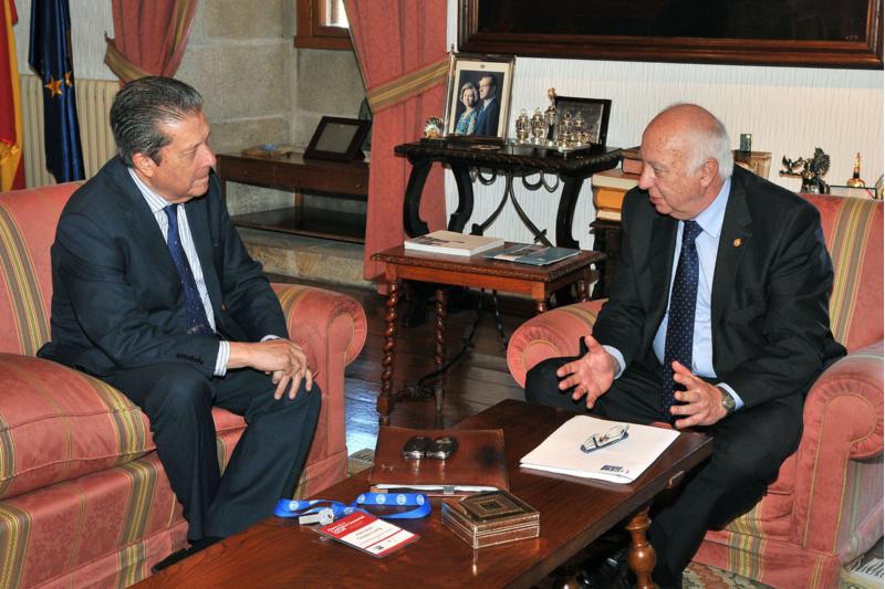 O presidente da Fundación para una Cultura de Paz, Federico Mayor Zaragoza, visitou este venres 9 a USC, onde foi recibido polo reitor Juan Casares antes de acudir á Facultade de Ciencias da Educación, onde impartiu a charla titulada ‘Da forza á palabra, a transición histórica que se aveciña’. Mayor Zaragoza departiu con alumnos e profesores sobre os logros conseguidos en materia de educación para a paz nos últimos anos, así como o traballo que nesta materia resta por facer e explicou a transición que para a humanidade supón apartar a forza en favor do uso da palabra e as consecuencias de dar este paso. O Presidente de Cultura de Paz visitou en varias ocasións a Universidade de Santiago para participar en numerosas charlas, encontros e seminarios, nos que achega a súa experiencia como experto en educación, así como para falar do traballo que neste campo desenvolve a fundación que preside.